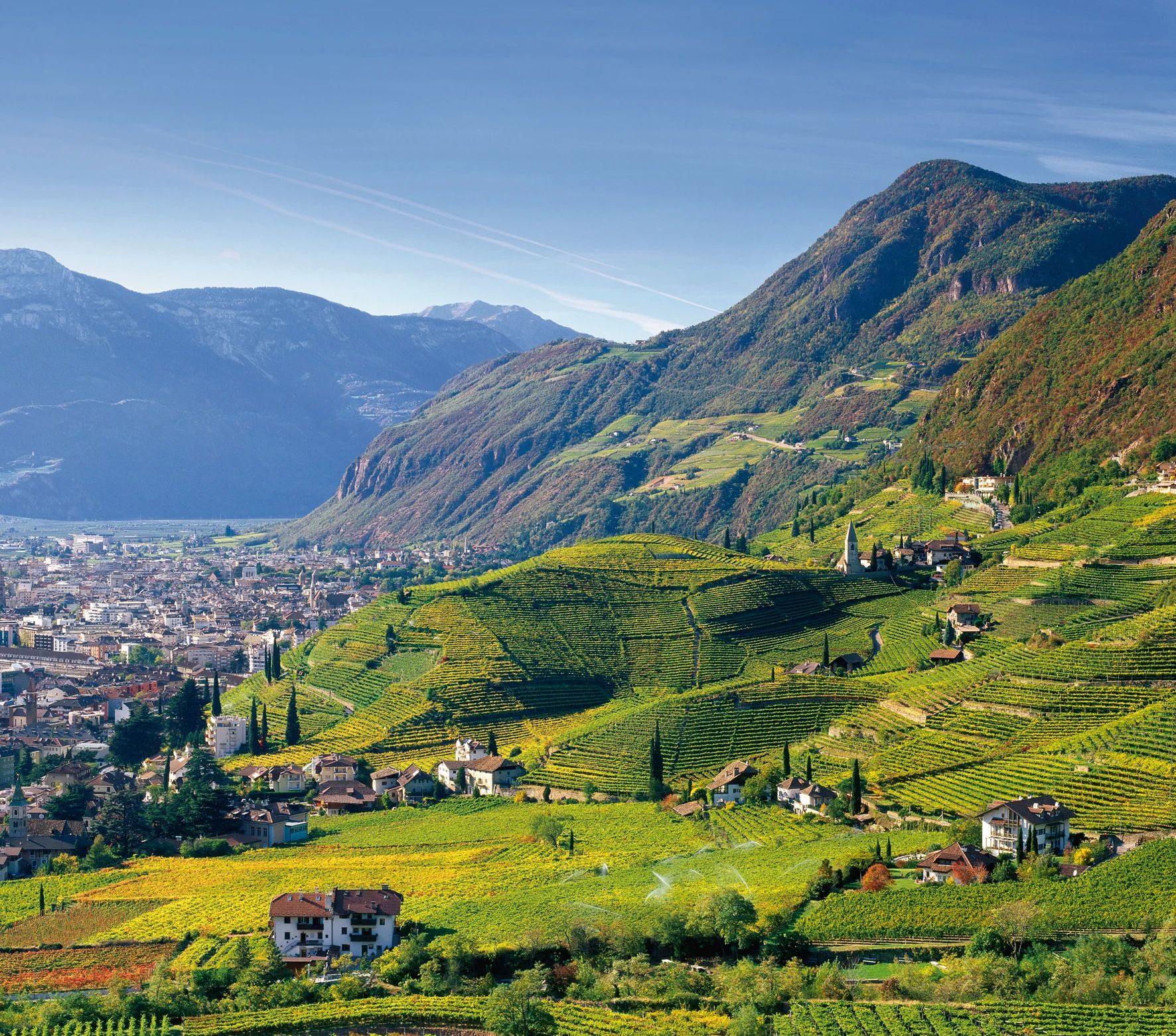 The vineyards of Nals Margreid are distributed over 14 wine growing areas in South Tyrol (or Sudtirol), from Nals, a small town in the north between Merano and Bolzano, to Margreid in the south. These areas vary greatly in their micro climate and soils, as well as elevations that range from 650 feet to 3000 feet. Don’t let the northern location fool you-this region enjoys average of 300 sunny days each year. Warm currents from the Mediterranean arrive from the south, colder air from the north is blocked by the main ridge of the Alps. The result is a significant change in temperature between day and night, allowing the grapes to develop a great balance between fruity ripeness and crisp acidity.